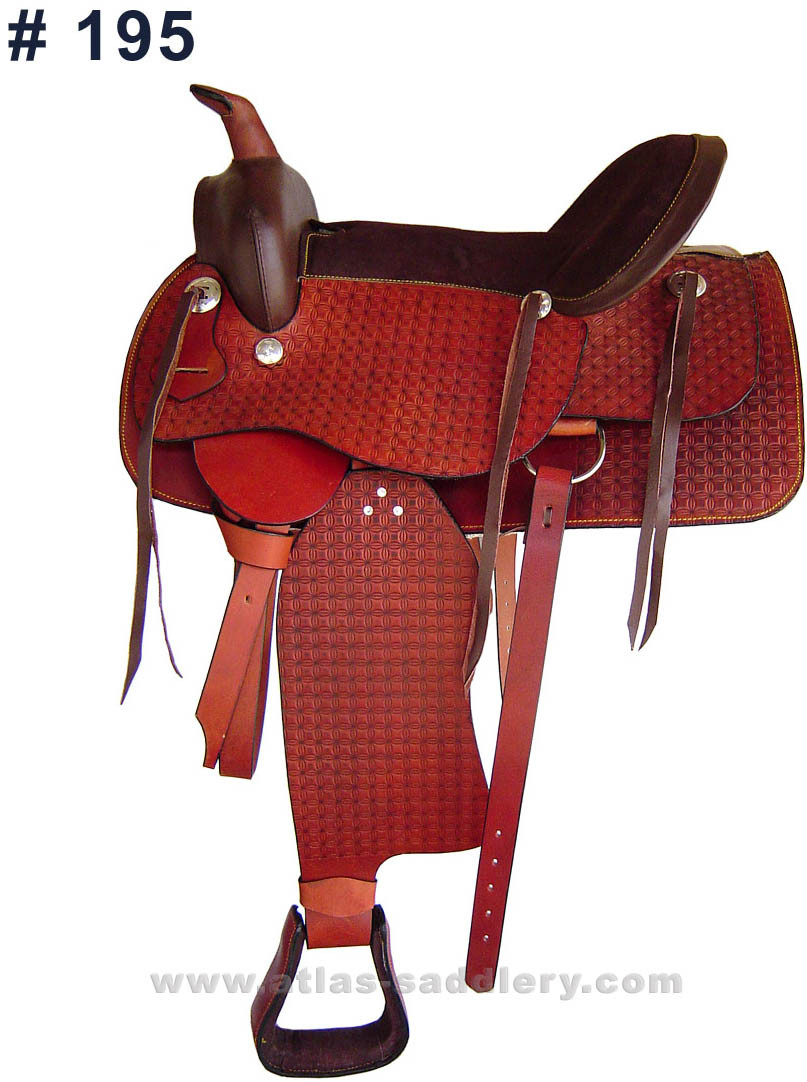 Western Saddle with Fibre Tree Embossed Leather with suede leather on Seat